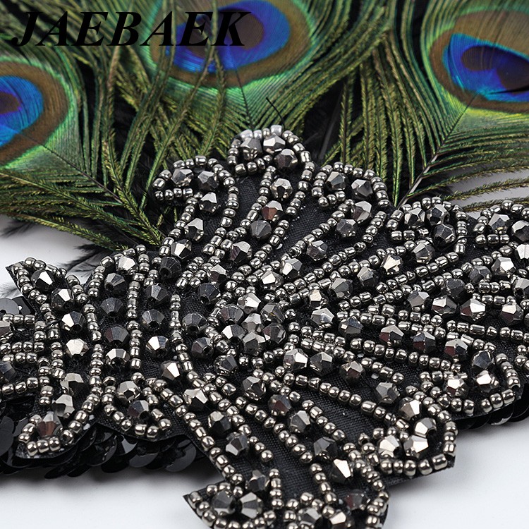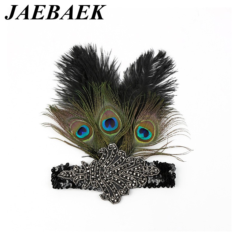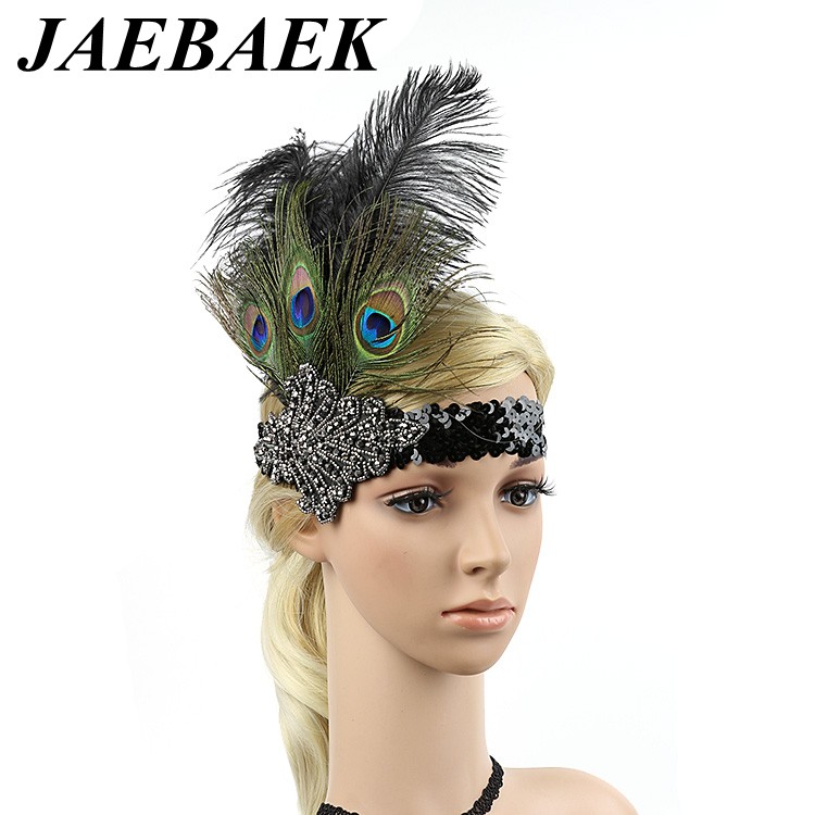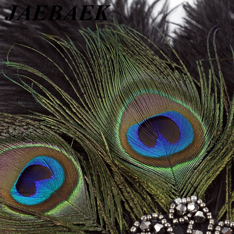 Luxusní sponka (čelenka) styl Great Gatsby - 20.léta s pavím peřím