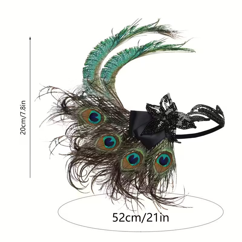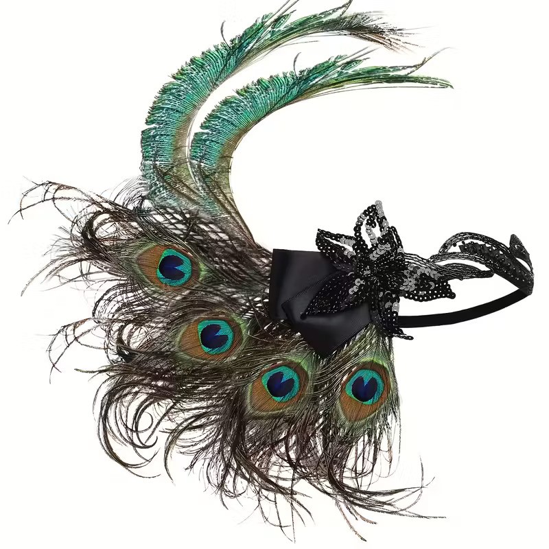 Luxusní sponka (čelenka) styl Great Gatsby - 20.léta s pavím peřím