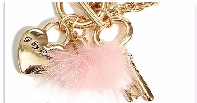 Náramek Guess zlaté barvy s růžovou kožešinkou
