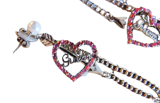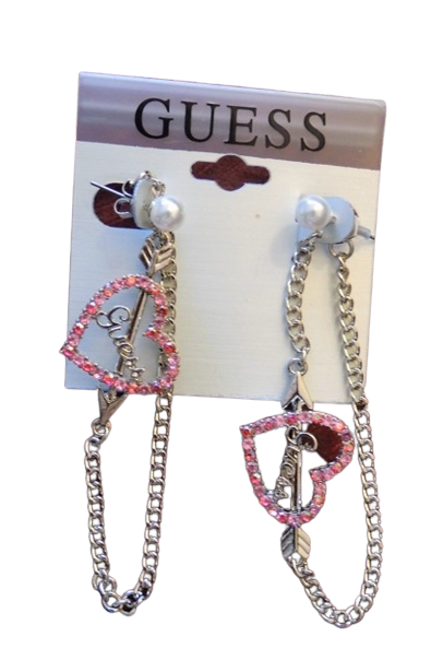 Náušnice Guess stříbrné barvy s růžovými srdíčky