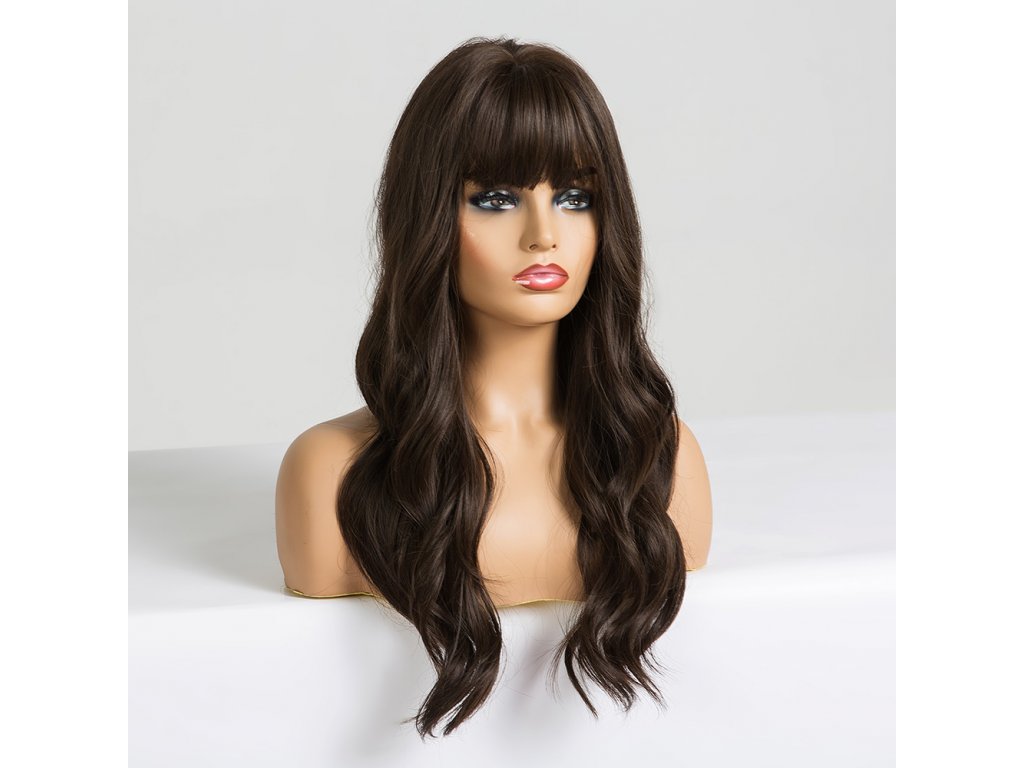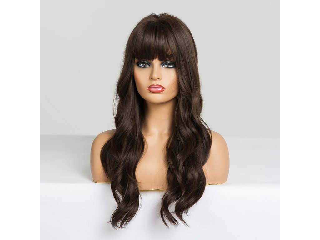 Rovná hnědá paruka s ofinou přes celé čelo. Je vyrobena z kvalitních syntetických vláken, které jsou zárukou pohodlného nošení.