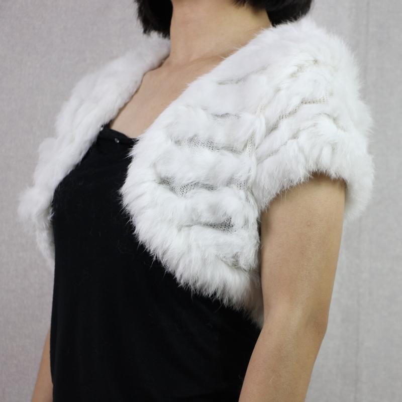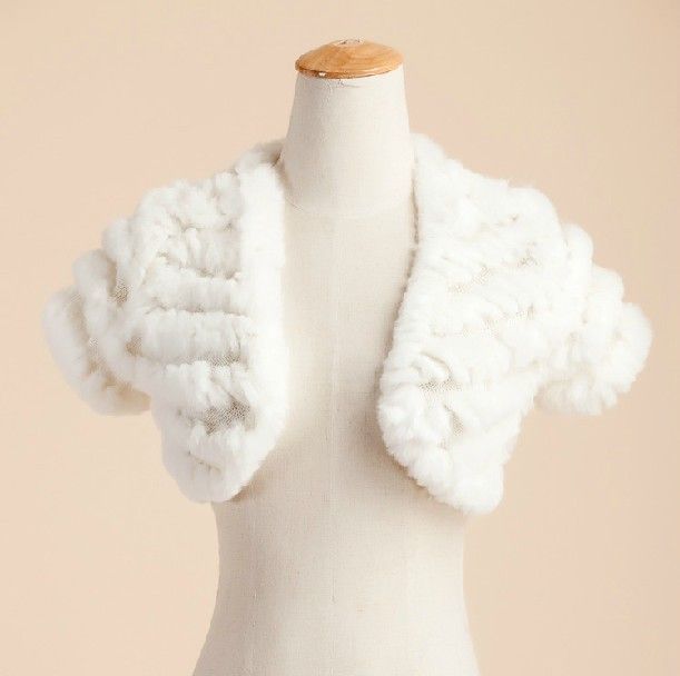 Dámské / dívčí pletené bolerko s králičí kožešinou bílé barvy