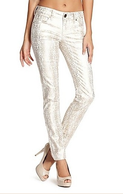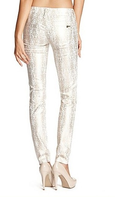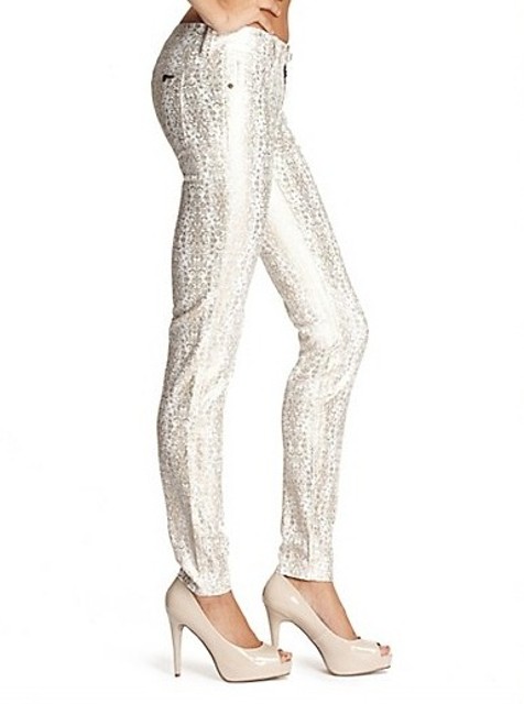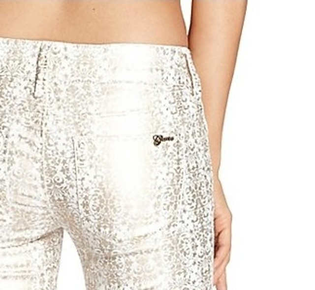 Dámské kalhoty GUESS Alice bílé džíny se zlatým potiskem