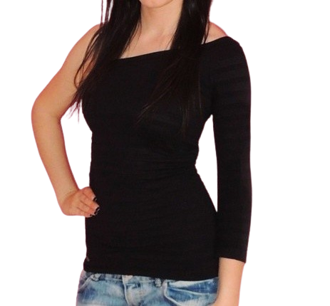 s jedním 3/4 rukávkem a jedním sexy odhaleným ramenem
