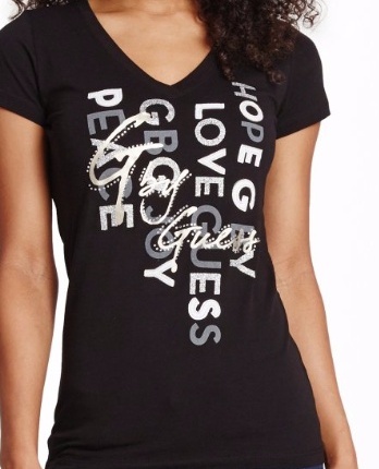 potisk a nápis Guess doplněný kamínky