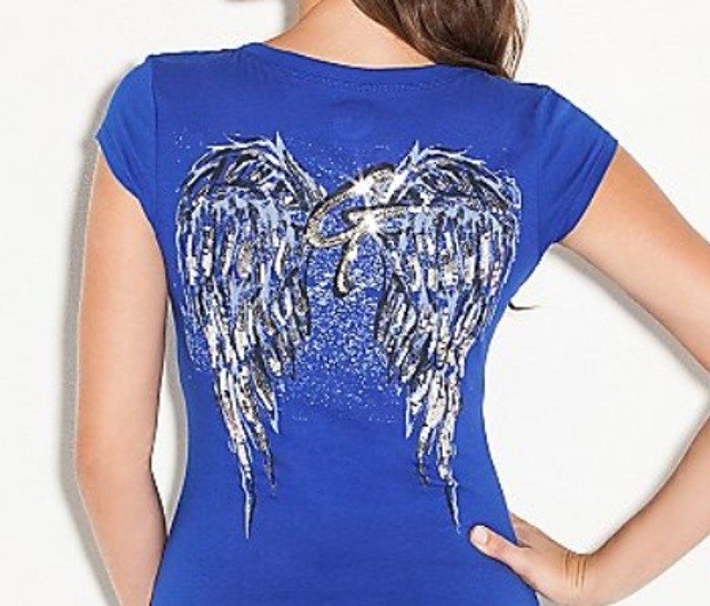 vpředu nápis G by Guess z flitrů , vzadu vyšitá křidýlka