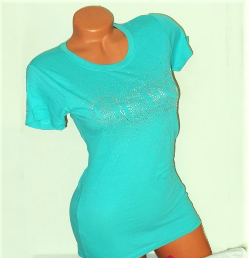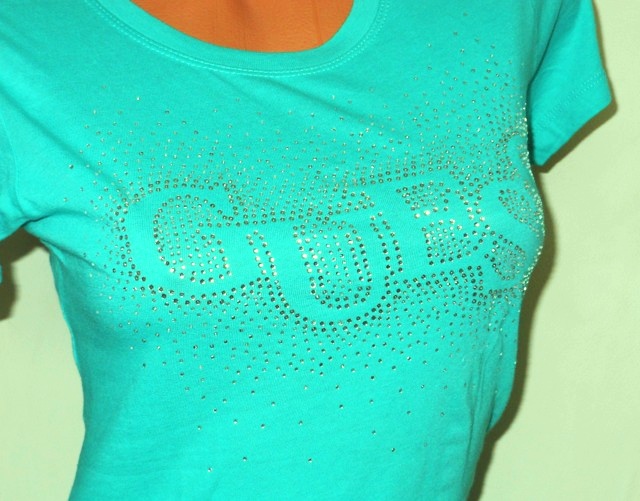 Dámské tričko Guess Lunette tyrkysově zelené triko s kamínky