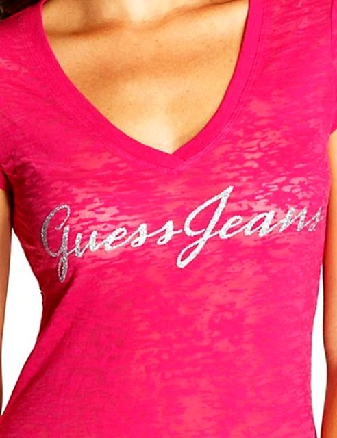 DáDámské tričko Guess Waverly růžové triko s andělskými křídly na zádech