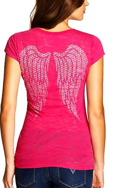 Dámské tričko Guess Waverly růžové triko s andělskými křídly na zádech