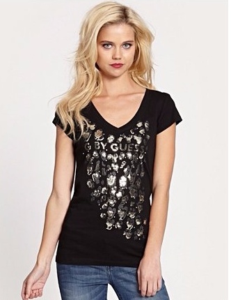 Dámské tričko G by Guess Fabia černé triko s flitry