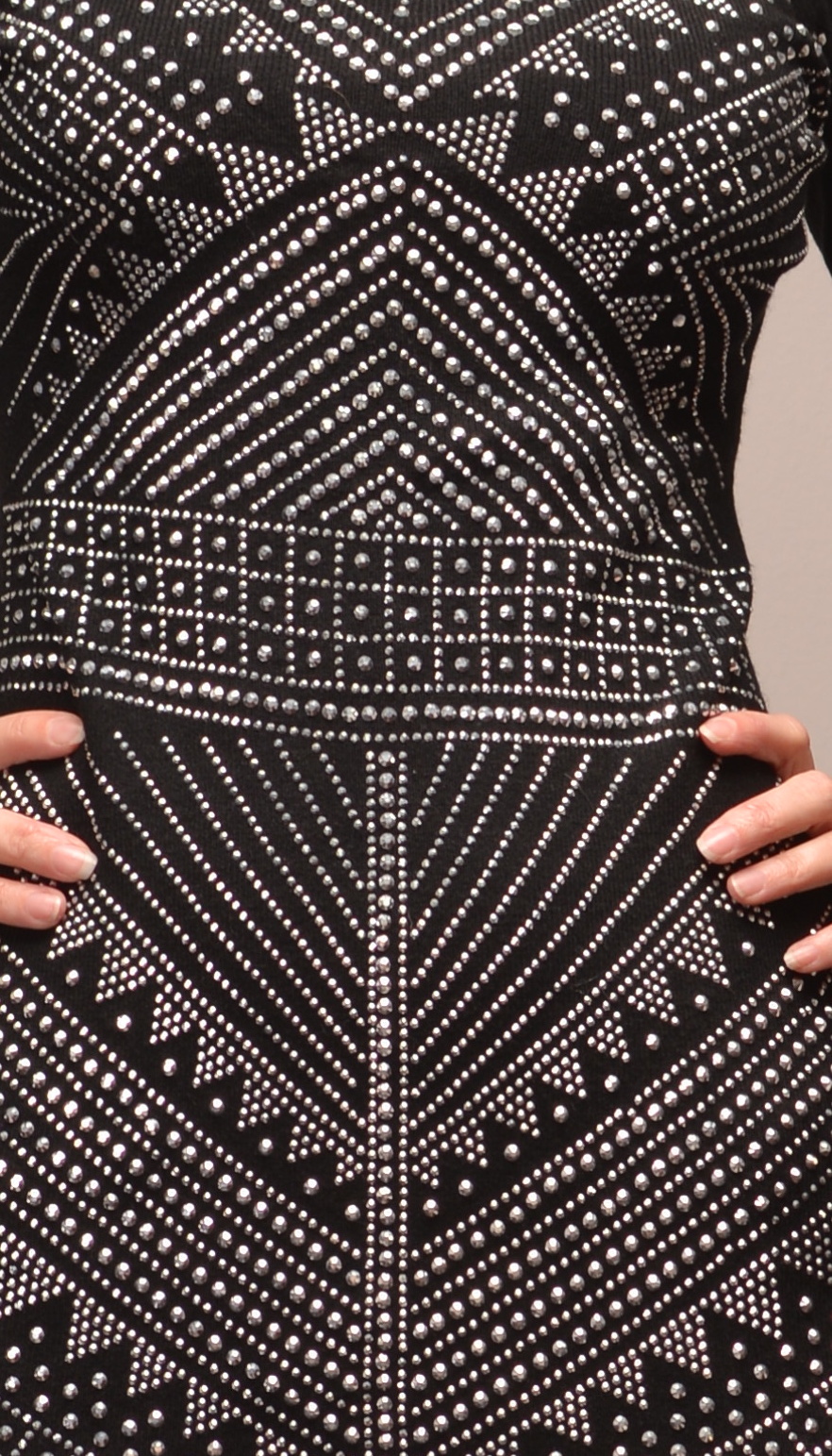 Dámské zimní úpletové šaty s kovovými kamínky černé