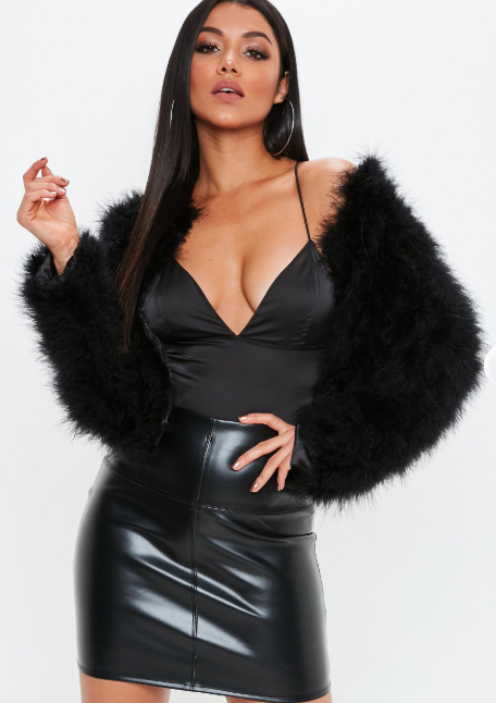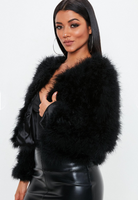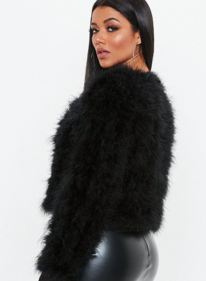 Dámský kožíšek z pštrosího peří nadýchaná bunda černé barvy