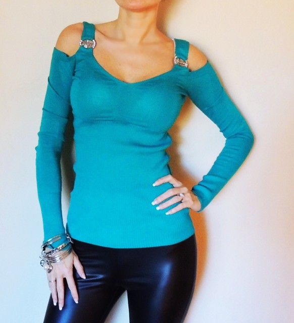 Dámský pulovr Guess tyrkysově zelená pletená halenka