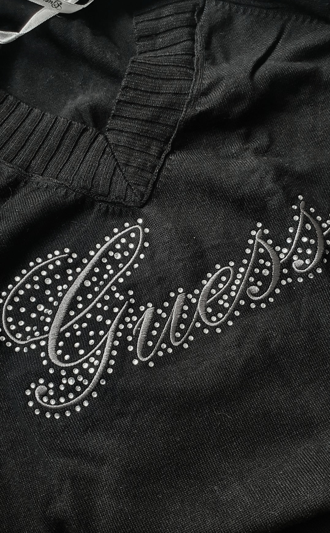 - nápis Guess tvořeno třpytivými kamínky na přední straně