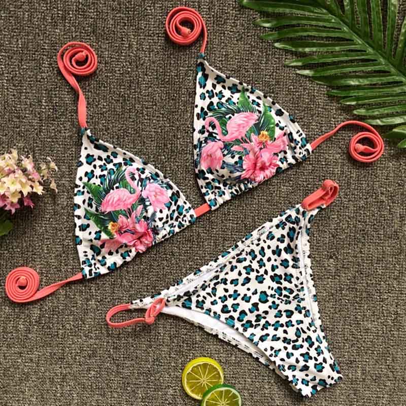 Dámské plavky leopardí bikiny s motivem plameňáka