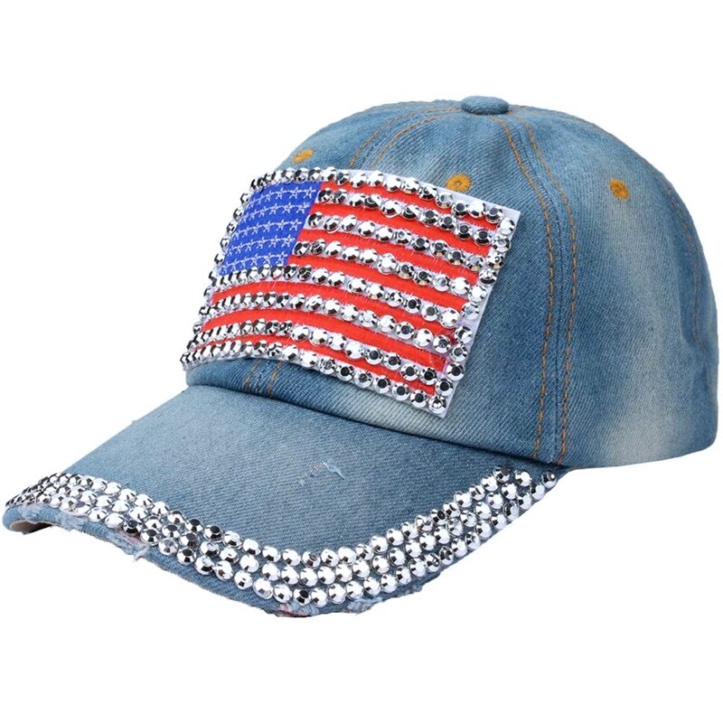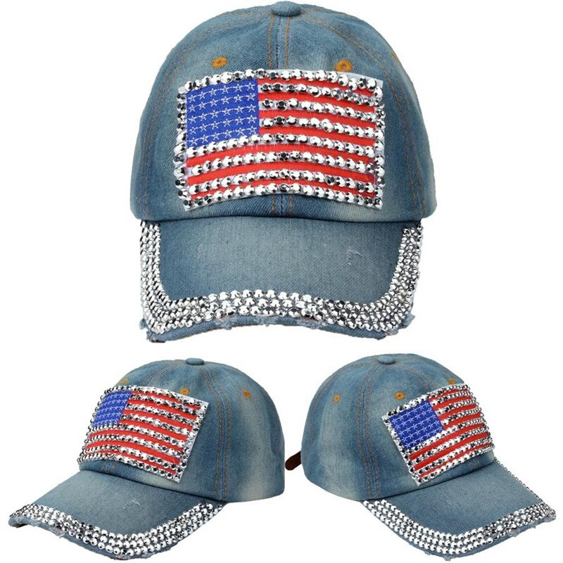 dámská - dívčí džínová kšiltovka s kamínky s USA vlajkou