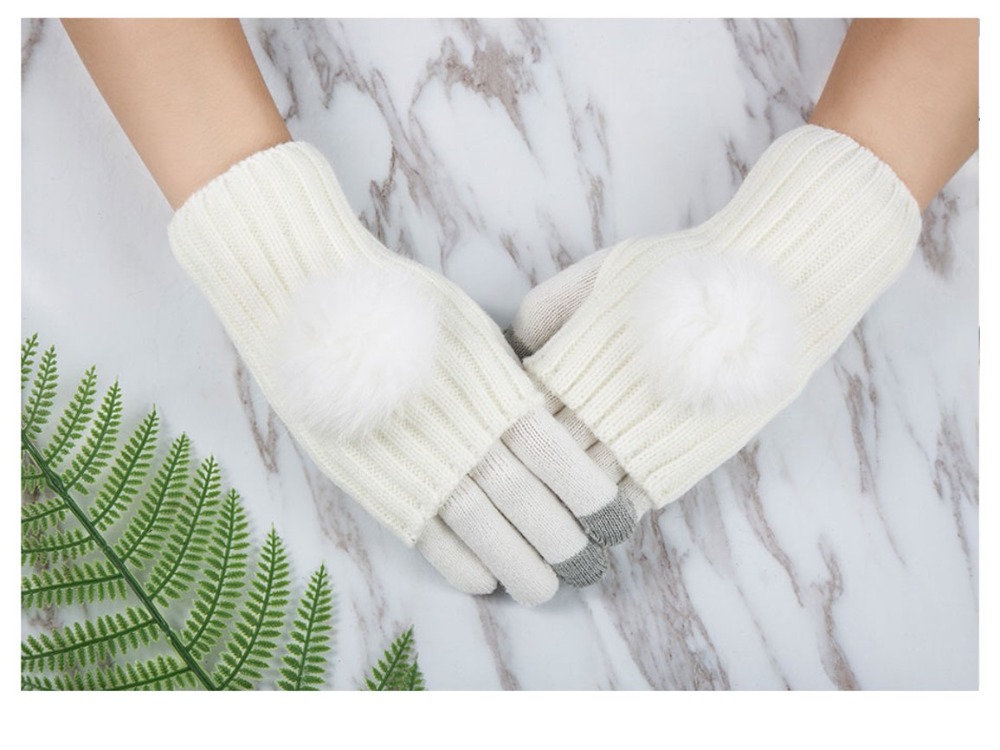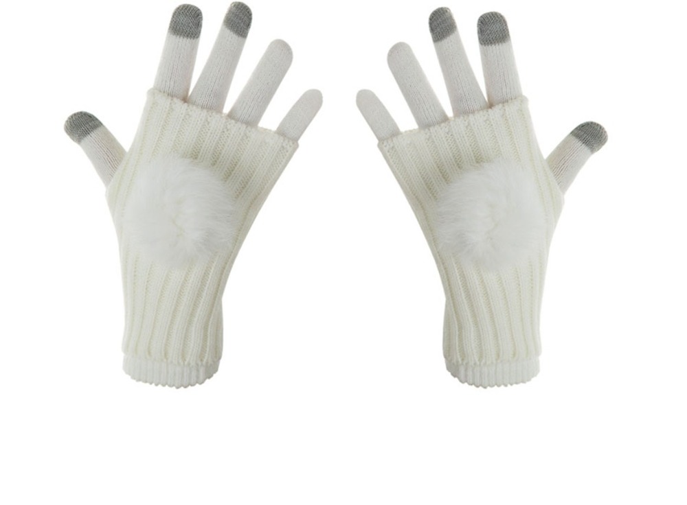 Dámské / dívčí rukavice bílé s kožešinkou na dotykový displej , mobilní telefony