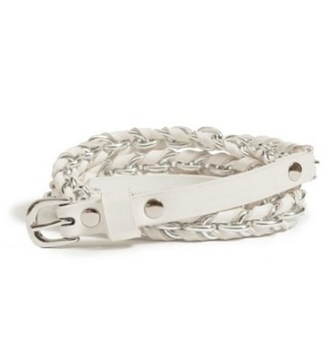 G by Guess opasek bílý se stříbrným řetízkem
