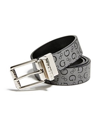 Opasek Guess černý / šedý oboustranný logový pásek