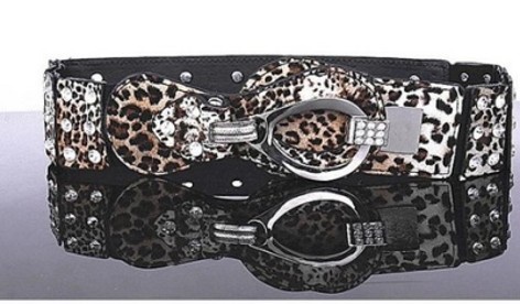 Pružný dámský leopardí opasek zdobený kamínky
