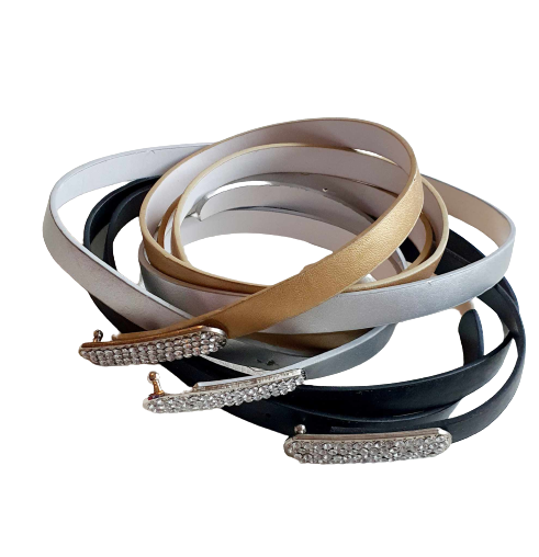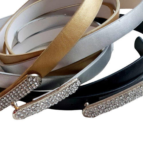 sada 3 x dámský pásek zlatý, stříbrný a černý se sponou s kamínky