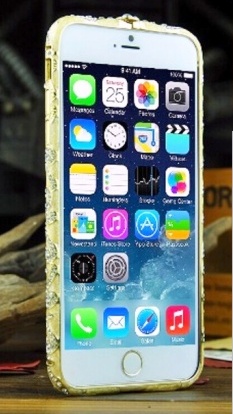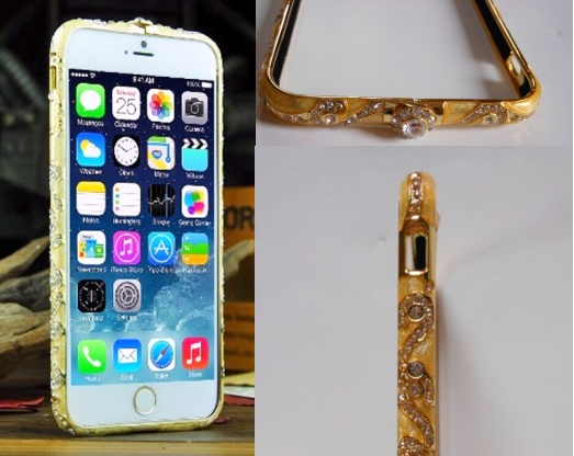 Trendy kryt zlaté barvy, bohatě zdobený kamínky, hliníkový pevný rámek, který zaručí ochranu Vašeho mobilního telefonu a zároveň z něj udělá