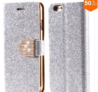 rámek - kryt na iPhone 6 / 6s stříbrný s třpytkami