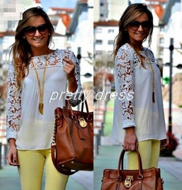 Dámská šifónová blůzka s krajkovým vrškem a rukávy